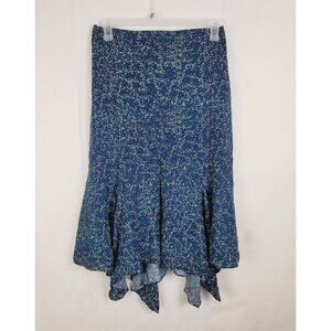Max Studio blue ditzy floral handkerchief hem midi skirt Sz L fairy cottage boho