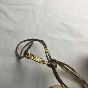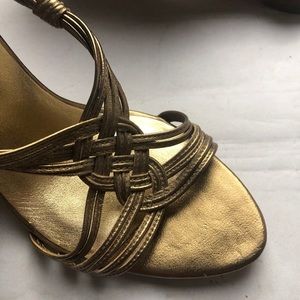 Max studio gorgeous bronze strappy sandals with adjustable ankle strap and stacked wood heel.