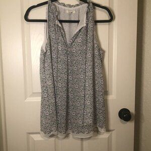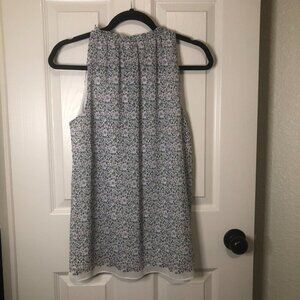 Max Studio green/purple/white floral chiffon sleeveless tie-neck blouse size S
