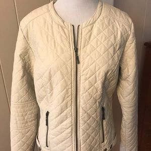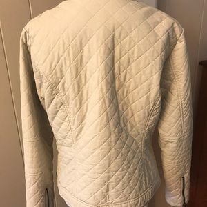 Max Studio jacket. Quilted and lined. Jacket measures 23” long. Sleeve length is 24”. Measurement from arm pit to arm pit is 18”.