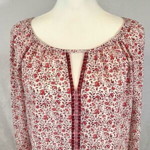 Max Studio long sleeve pink & white ditsy floral georgette blouse top size small