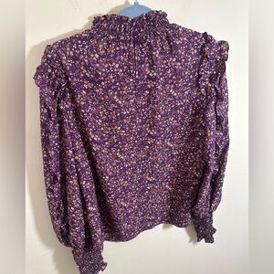 Max Studio long smocked sleeve peasant blouse size Small maroon purple