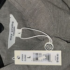 Stylish olive green top by Max Studio. Features front pockets and zip closure. Perfect for casual wear.