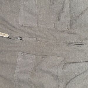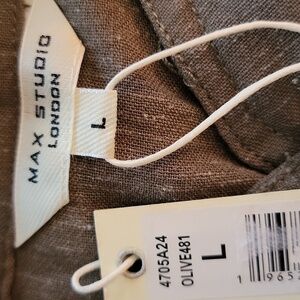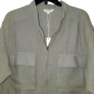 Max Studio olive green zip up shirt jacket women's top linen blend