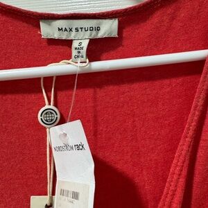 Max Studio salmon color Wrap Midi Dress V-Neck Tie Front