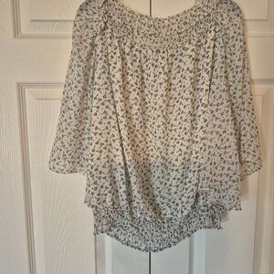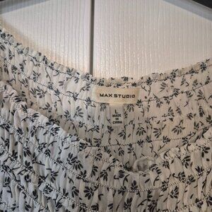 Super cute cropped Max Studio Cropped blouse - gathered elastic waste. Sits right on your wasteline. Sleeve are flowy!. Cute summer floral print, blouse is more cream or off white than pure white. In excellent condition, worn one time. Size L.