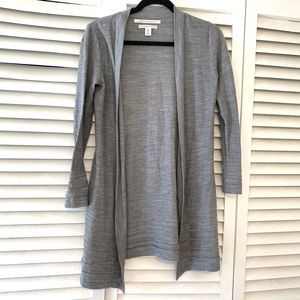Max Studio size Small 100% Extra Fine Merino Wool Grey Open Front Long Cardigan