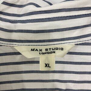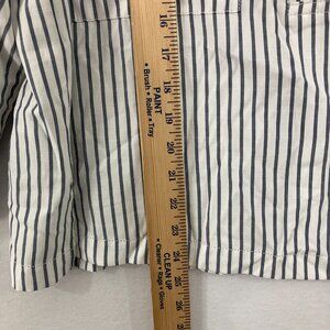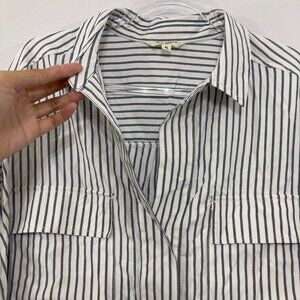 Max Studio size XL Gray White Striped Boxy Cut Relaxed Rolled Sleeve Popover Top