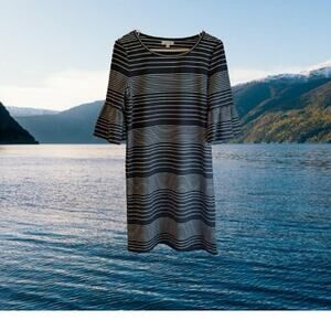 Max Studio small NWOT bell 1/2 sleeve blue white striped spring dress
