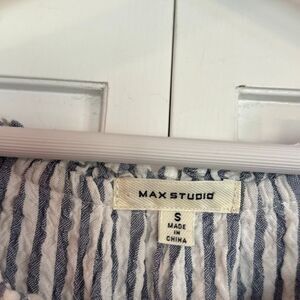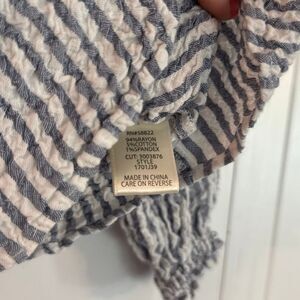 Description: cotton blend striped crinkle tie neck blouse cropped