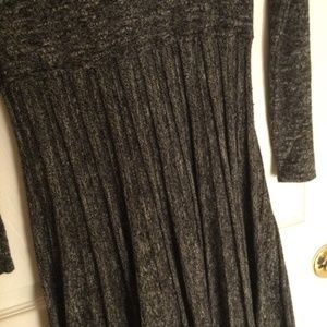 Max Studio sz S long sleeve dark grey sweater dress w/ cowl neck, pleated skirt