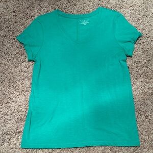 Euc, Max Studio short sleeve tee. Green, vneck, rolled sleeve