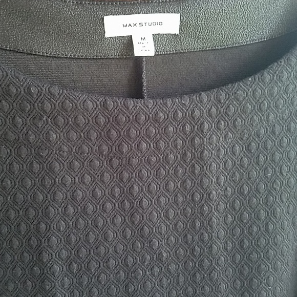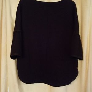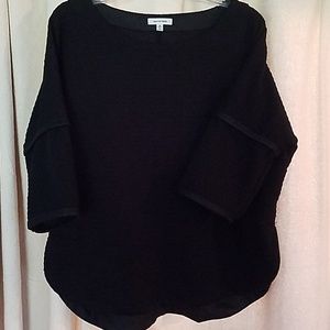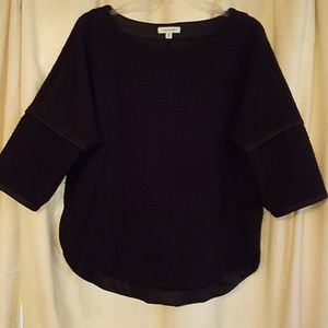 Used. Black three quarters sleeve top. Pleather detail on sleeves and inside trim. Please look at all pictures.