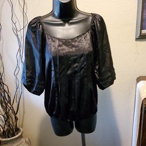 The blouse has a glossy look which is great for fun "out on the town" wear or a sophisticated work environment