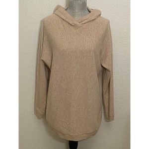 Max Studio women Beige hissed 100% 2-Ply cashmere Hooded V neck sweater size M