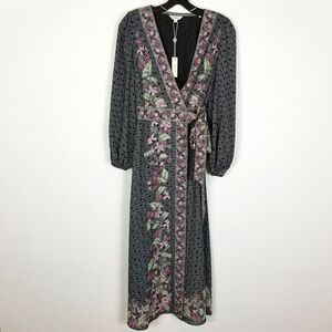 Max Studio womens V-Neck Dress Maxi Size XS Wrap Floral Tie Waist