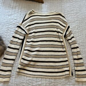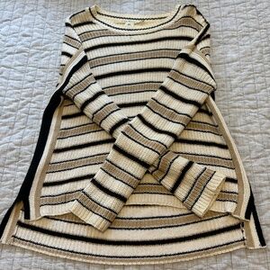 Max Studio, women's winter sweater, striped tan/black/white, size M