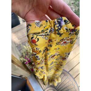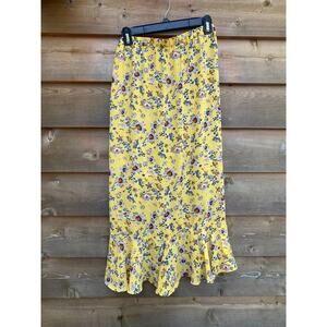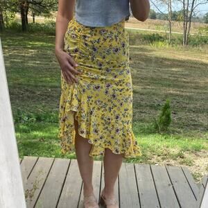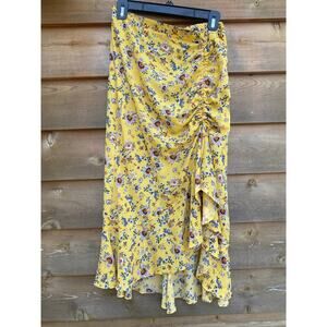 Max Studio yellow floral ruched ruffle asymmetrical midi skirt