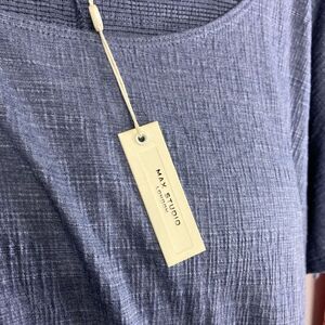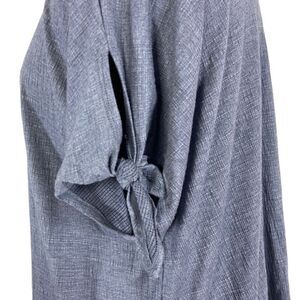 Max Studio 3X Chambray Blue Top Short Tie Sleeves NWT Coastal Basic Minimalist
