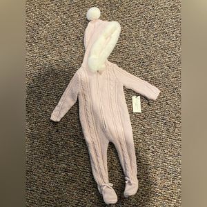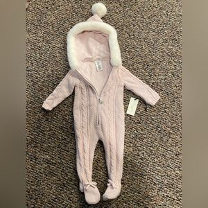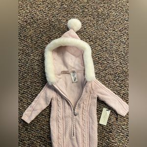 Max Studio Baby Knit Romper fur hoodie Blush pink one Piece