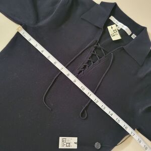 Max Studio Black Lace-up Collared Long Sleeve Pullover Sweater