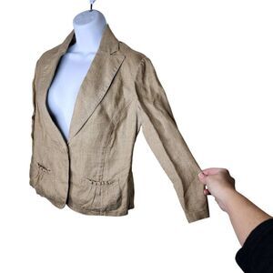 Max Studio Cinched Waist Short Linen Casual Fashion Blazer Womens Size 8 Beige