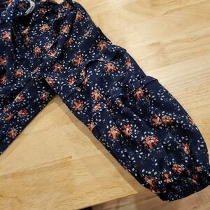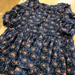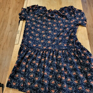 Max Studios Navy Blue Floral Ruffle 3/4 Sleeve Med Knee Length Dress
