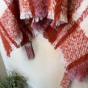 Max Stuido Fuzzy Knit Plaid Fringe Hemline V-Neck Belted Open Front Soft Cozy Comfy Fall Autumn Winter Shrug Poncho Cloak Sweater Blanket Boho Chic Bohemian Coastal Cowgirl Punchy Westerncore Cabincore Coastal Grandma Cottagecore Cozycore Gorpcore Festival Relaxed Drapey Cover Up Cardigan Blanket Kimono