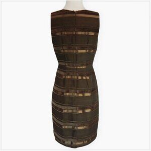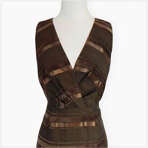 Max and Cleo Brown Satin Stripe Fitted Sheath Sleeveless Cocktail Dress 2