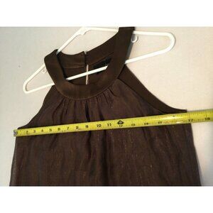 Max and Cleo Brown Shift Dress Sleeveless Size 4 Summer Metallic Gold Sparkle