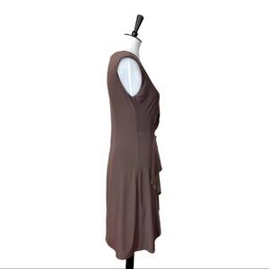 Max and Cleo Celine Taupe Shirred Cascade Wrap Skirt Sheath Dress Size Small