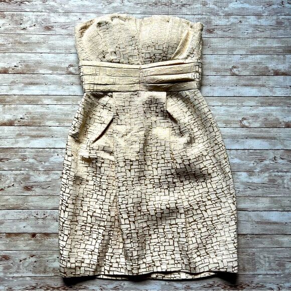 Max and Cleo Champagne and Gold Strapless Party Dress Size 2