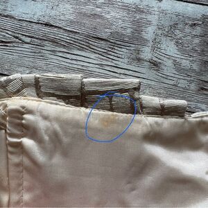 Small spot of discoloration on the inner fabric near the top, see photo. Not visible when worn.