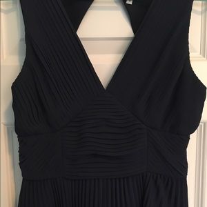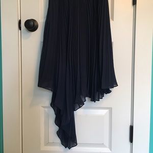 Max and Cleo Navy Blue pleated chiffon asymmetrical dress with a v-neckline. Never worn before and has been kept in fantastic shape. Fits beautifully with a concealed side zipper. Perfect for a cocktail event or a fancy date night! Size 4, fits small more like a 0 or 2.