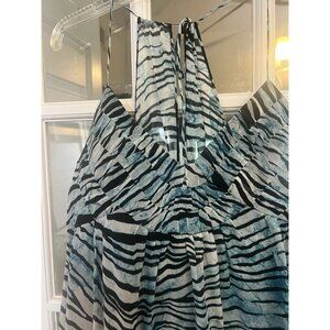 Max and Cleo Pleated V Neck Sleeveless Babydoll Dress 14 Y2K Animal Print. C