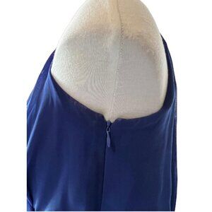 Max and Cleo Sheer Asymmetrical Dress Sz 4 (Small) Striped Blue, Yellow, & Gray