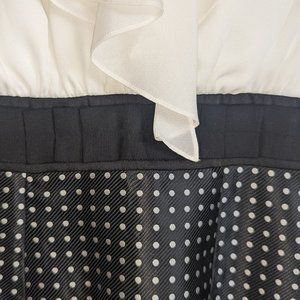 Max and Cleo Sleeveless Dress Sheath Polka Dot Ruffle Empire Waist Black Sz 4