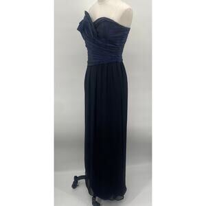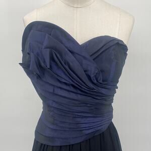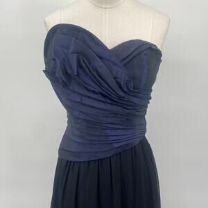 Max and Cleo Strapless Gown Maxi Dress Asymmetric Pleats Iridescent Blue Black 6