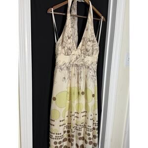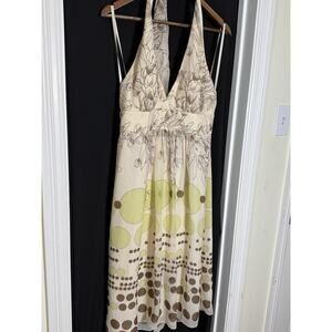 Max and Cleo Twee Style Y2K Halter Neck Dress in Green, Brown and Cream NEW