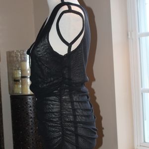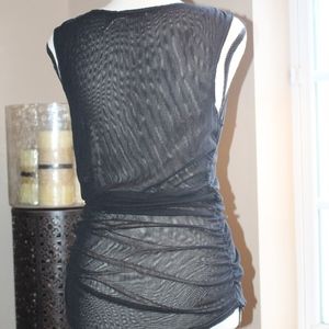 Maxstudio very sexy, body hugging, v neck, and ruching on both sides of the shirt.