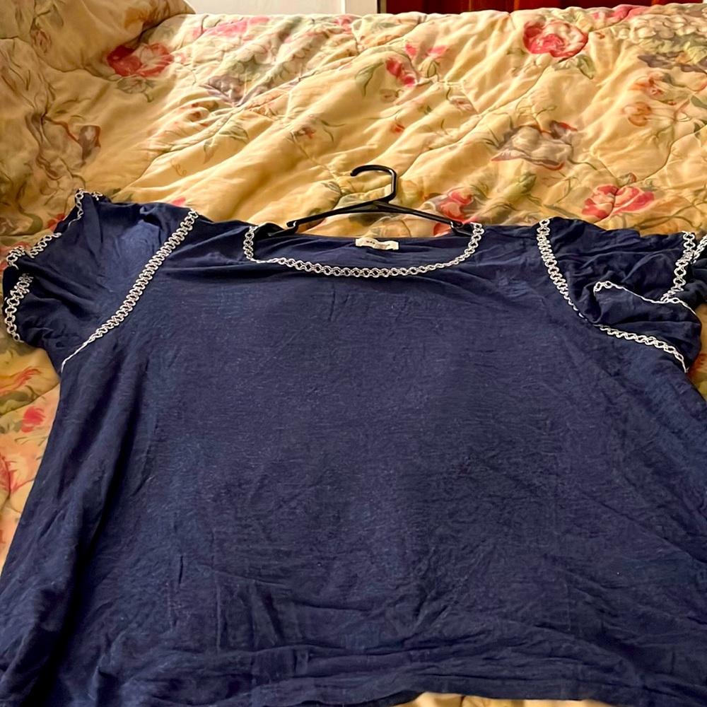 Super soft cute navy tee. Scalloped around neck and arms. Super comfy and cute. Size 2x from Marshall’s