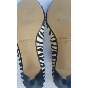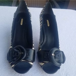 Open toe zebra heels with front buckle - never worn. Look great with jeans or dressy!