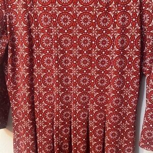 Max studio size L red dress floral print pleated fit and flare 3/4 sleeves