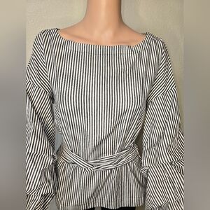 Max studio striped blouse with puff sleeves and bow At The Waist OverSize Small