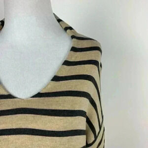 Max studio womens sweater size XS tan gray striped hooded tunic Dolan sleeve