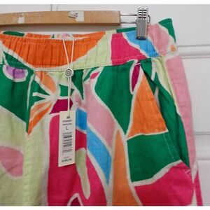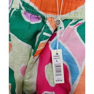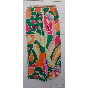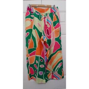 Max studio women large wide leg linen pink green pants $195 lagenlook 32 waist