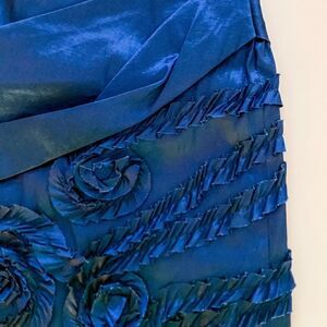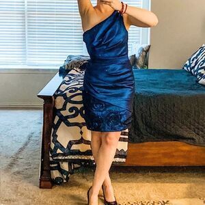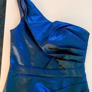Gorgeous one shoulder MaxAndCleo blue dress. The blue color is a kind of metallic blue that changes tone depending on the light. Has only been used once and it is in perfect condition. This dress would be perfect for that Holiday Party!