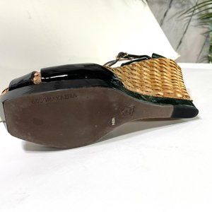 MaxAzria Ma-Dades wedge black patent bamboo sandal