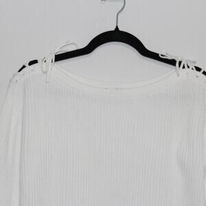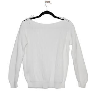 MaxMara 100% Cotton White Boatneck Knit Sweater Tie Detail Size Large