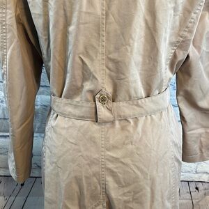MaxMara Beige Trench Coat Size 12 Flap Pockets Tab Faux Belt Full Zipper & Snaps